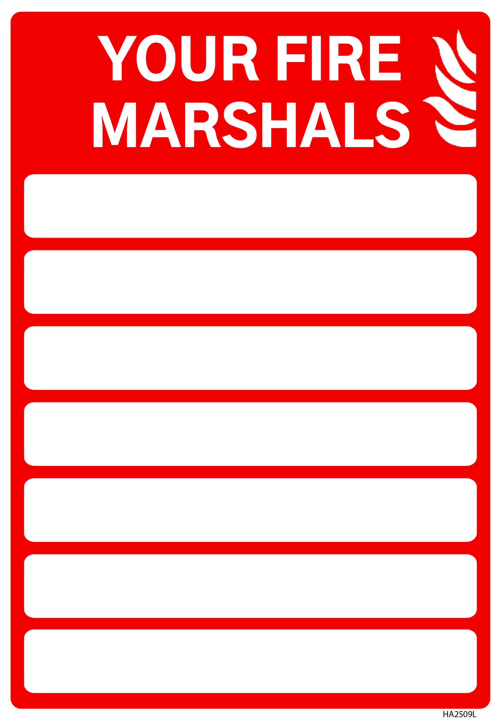 Fire Marshals Sticker size A4 - for 7 Fire Marshals Names and comply fully safety sign standard also other sizes available die cut ready to peel and paste.