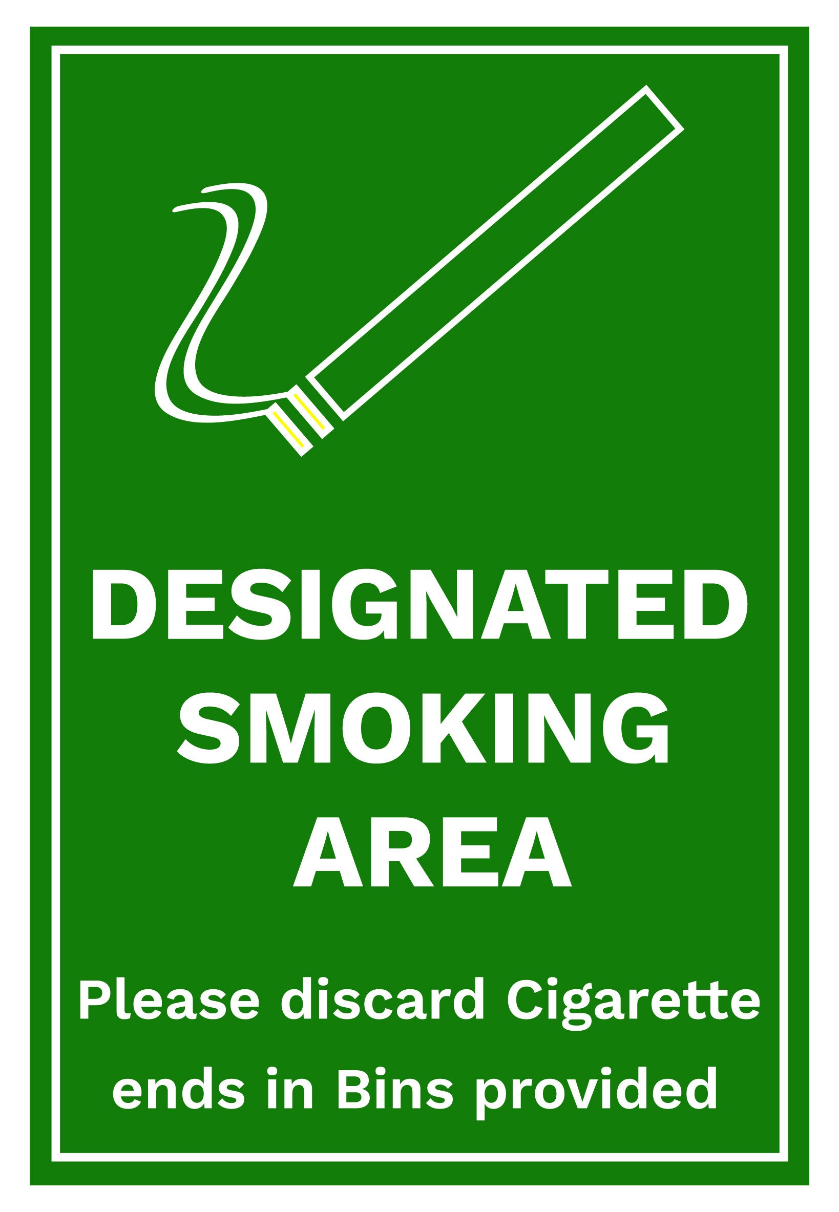 Designated Smoking area Sticker sign and comply fully with safety sign standard - size A4 also other sizes available die cut ready to peel and paste.