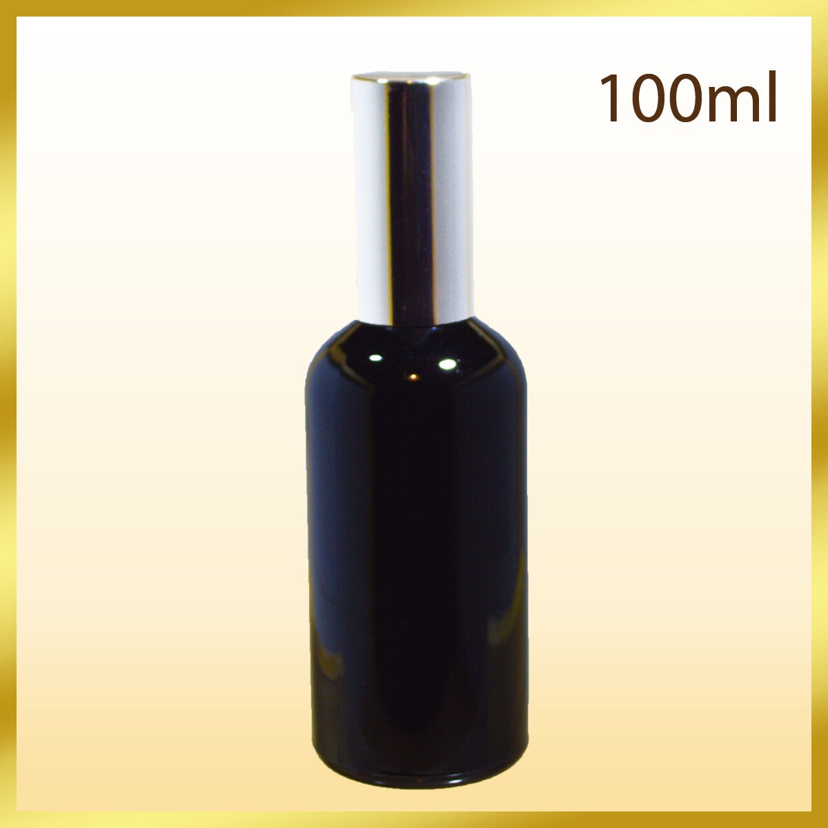 High quality 100ml aromatherapy empty Black Glass Bottles supplied with stylish, shiny, high quality new design & leak proof Silver Aluminium atomizer / fine mist spray for easy an even application used for Essential Oils, serums, Perfumes, Fragrance Oils, Massage oils, Bath Oils, Nail Oils and etc. giving the content full UV light protection.
