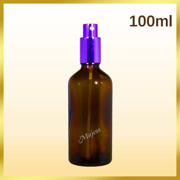 100ml empty Amber Glass Bottles with shiny Purple Atomiser / Mist spray