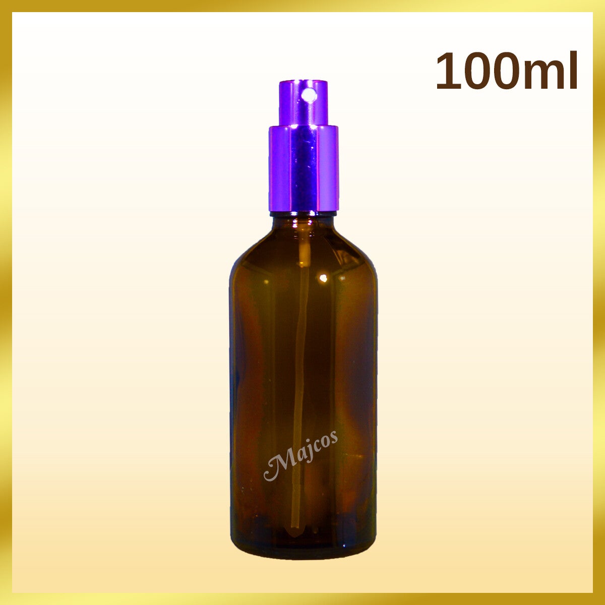 High quality 100ml aromatherapy Amber Glass Bottles supplied with high quality, new design & leak proof shiny Purple Aluminum atomizer / fine mist spray for easy even applications used for Essential Oils, serums, Perfumes, Fragrance Oils, Massage oils, Bath Oils, Nail Oils and etc. giving the content full UV light protection.