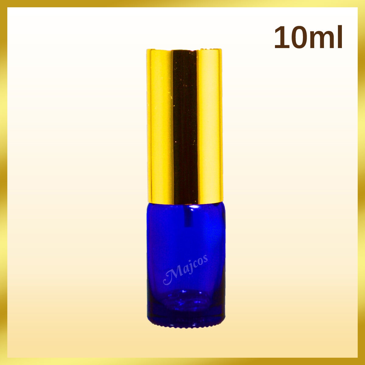 High quality 10ml aromatherapy empty Cobalt Blue Glass Bottles supplied with stylish high quality new design & leak proof shiny Golden Aluminum atomizer / fine mist spray for easy an even applications used for Essential Oils, serums, Perfumes, Fragrance Oils, Massage oils, Bath Oils, Nail Oils and etc. giving the content full UV light protection.