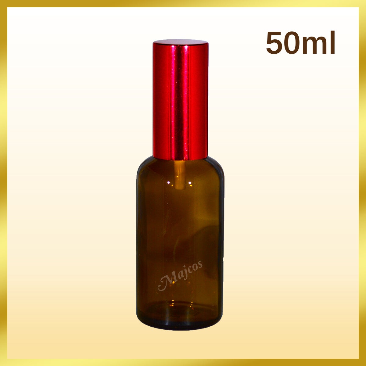 50ml empty Amber Glass Bottles with shiny Red Atomizer / Mist spray